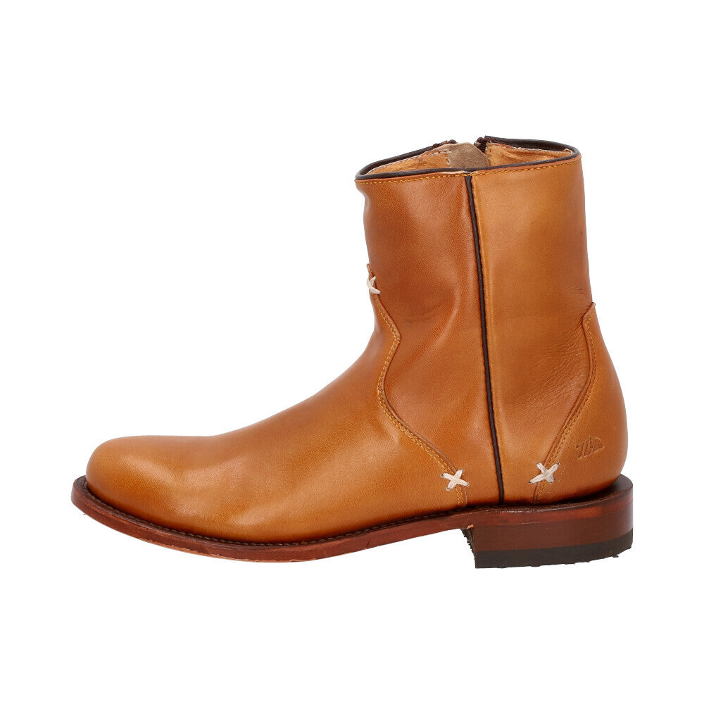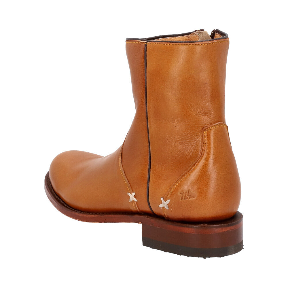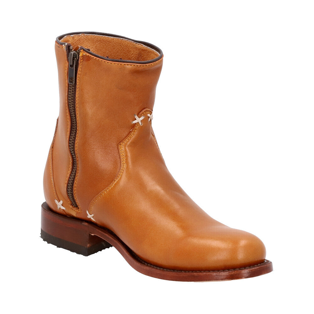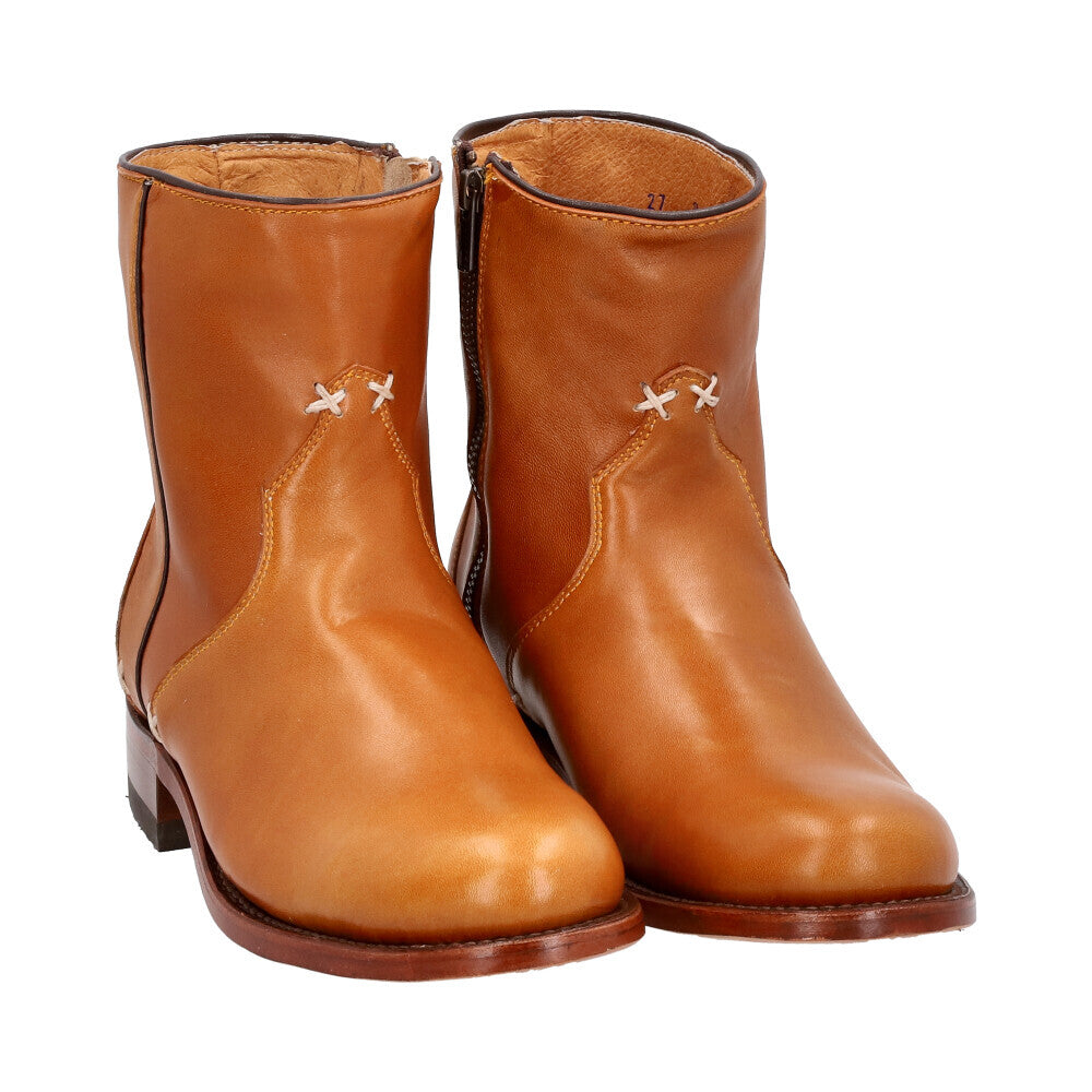 Modelo borrego, es un botín tipo vaquero pero tiene un toque sofisticado de elegancia, es de color camel con suela natural de cuero, tiene una caña de 18 cm con un taco cuadrado de 4 cm. Este botín es para usarlo de forma casual en la cotidianidad.